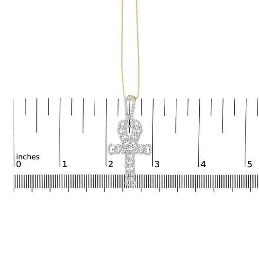 10K Yellow Gold 1.00 Cttw Diamond Ankh Cross Pendant (H–I Color, SI1–SI2 Clarity) – 18-Inch Chain Included