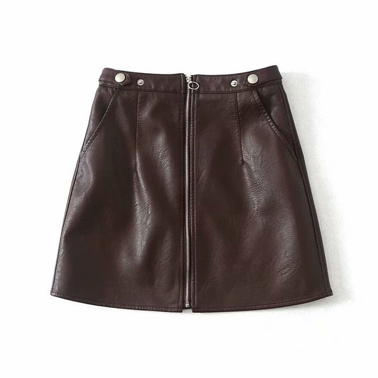 High Waist PU Leather Mini Skirt – Slim A-Line Zipper Fashion Skirt