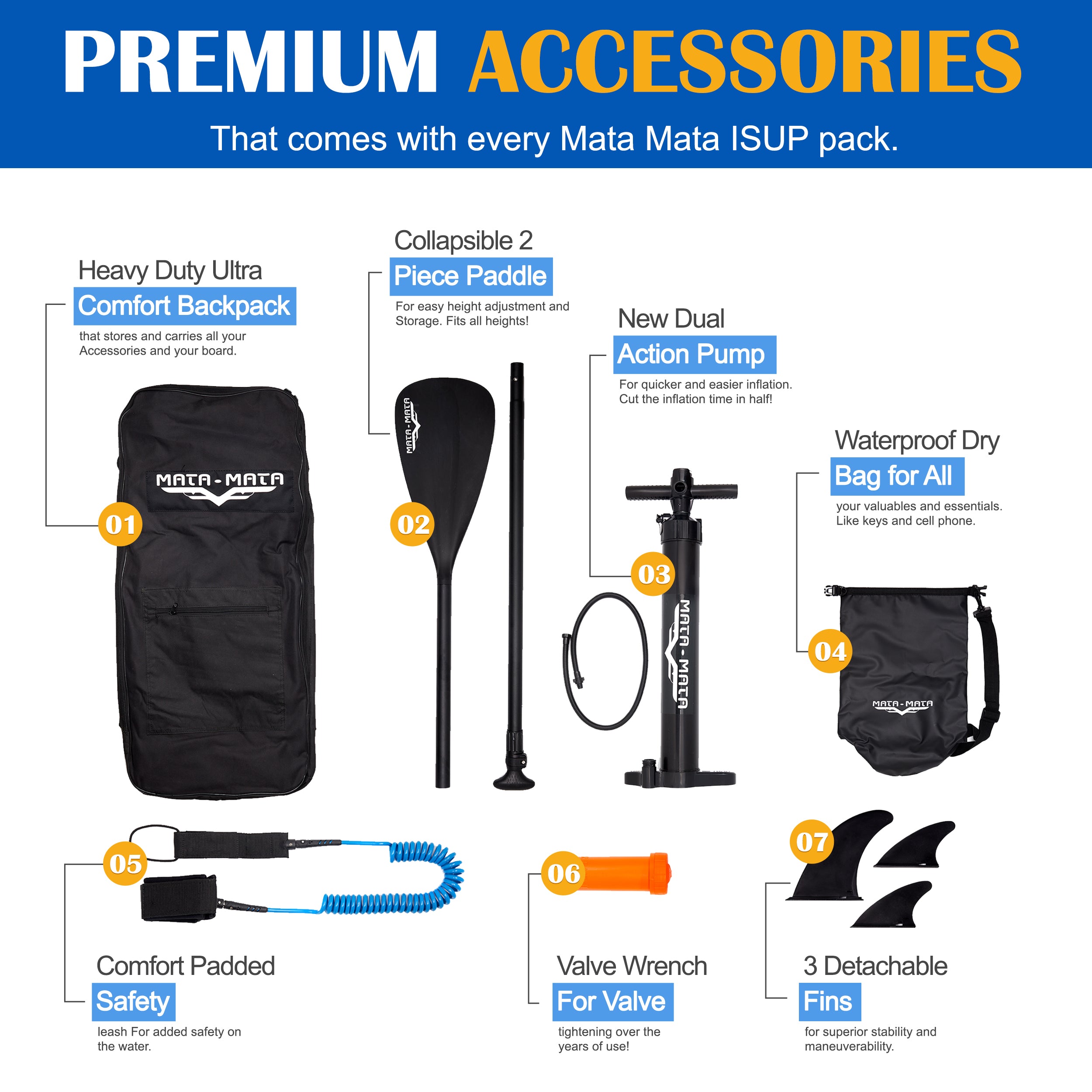 Introducing the MATA MATA Blue Stream ISUP PaddleBoard - a 10' wonder of stability and versatility. Built tough with a composite drop stitch core and high-grade PVC, it's virtually indestructible.