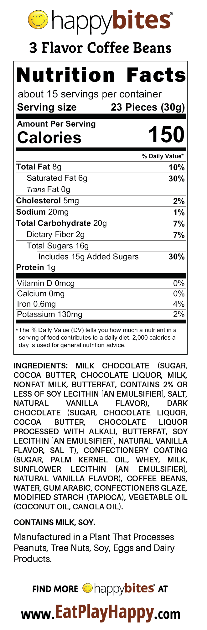 Indulge in the perfect blend of flavors with Happy Bites 3 Flavor Espresso Coffee Beans.
