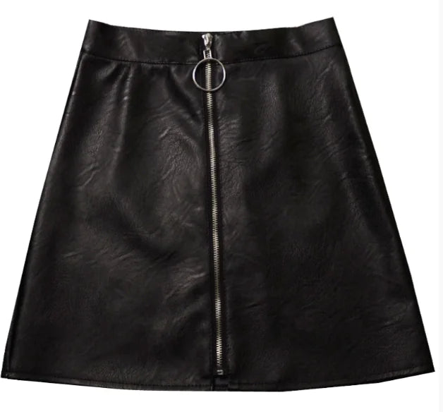 High Waist PU Leather Mini Skirt – Slim A-Line Zipper Fashion Skirt